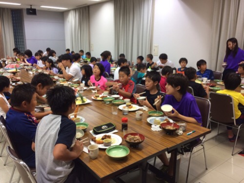 みんな元気に早朝ミーティングで のりさんの話を聞きます。